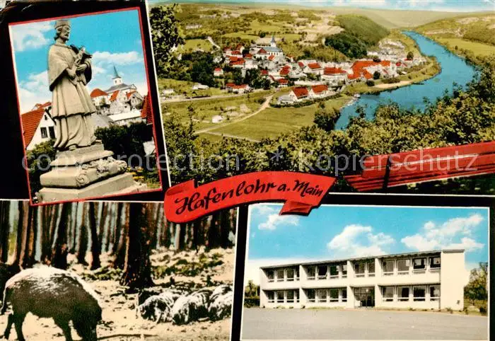 AK / Ansichtskarte 73852741 Hafenlohr Panorama Denkmal Wildschweine Hafenlohr
