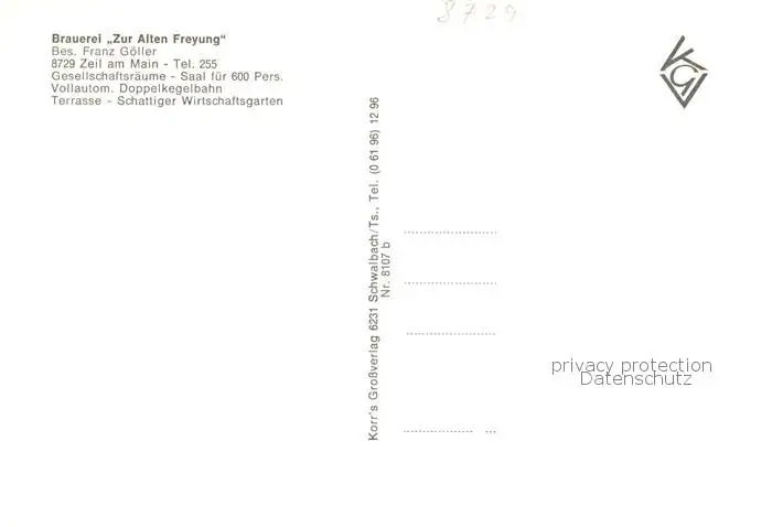 73852755 Zeil_Main Brauerei Gaststaette Zur Alten Freyung Gaststube Gartenwirtschaft Zeil_Main postalisch nicht gelaufen 1921-1965 Erhaltung siehe scans [WerneD78] [WernPID7 ]