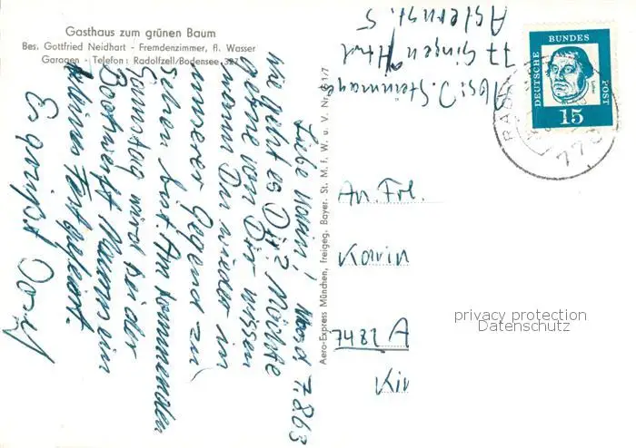 73852825 Moos__Bodensee Fliegeraufnahme Gasthaus zum gruenen Baum postalisch gelaufen 1963 Erhaltung siehe scans [WerneD78] [WernPID7 ]