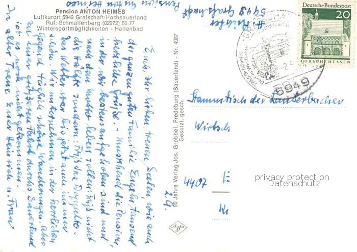 73852831 Grafschaft_Sauerland Pension Heimes Gartenterrasse Panorama Gaststube Grafschaft_Sauerland postalisch gelaufen nach 1965 Erhaltung siehe scans [WerneD78] [WernPID7 ]
