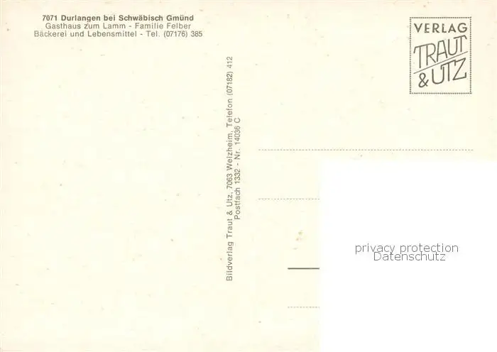 73852889 Durlangen Siedlung und Firma Waibel Kirche in Tanau Rathaus Kirche Durlangen Durlangen postalisch nicht gelaufen nach 1965 Erhaltung siehe scans [WerneD78] [WernPID7 ]