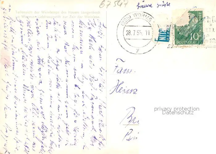 73852927 Worms_Rhein Langenbach et Co Wein und Sektkellereien Liebfrauenstift Worms Rhein postalisch gelaufen 1955 Erhaltung siehe scans [WerneD78] [WernPID7 ]