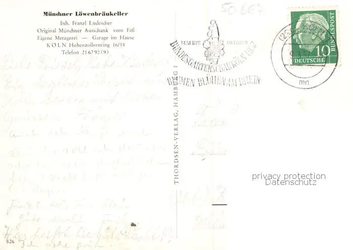 73852979 Koeln__Rhein Muenchener Loewenbraeukeller postalisch gelaufen 1957 Erhaltung siehe scans [WerneD78] [WernPID7 ]