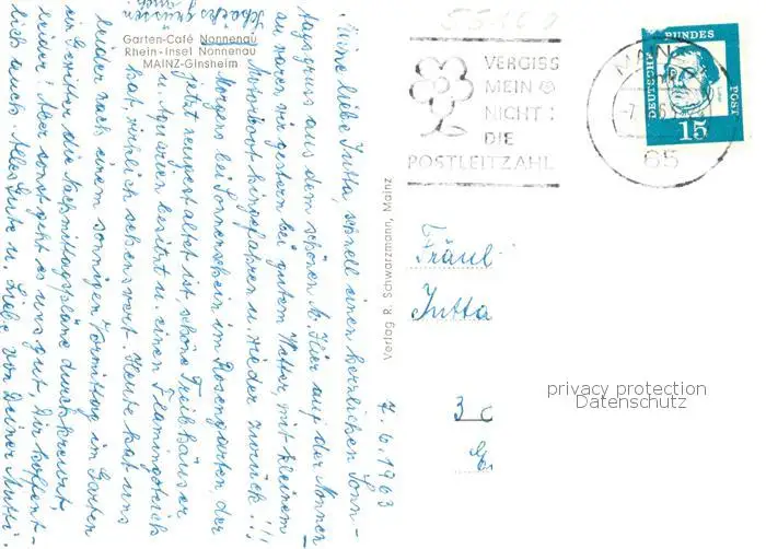 73852995 Nonnenaue Rhein Insel Nonnenau Garten Cafe Nonnenau Nonnenaue postalisch gelaufen 1965 Erhaltung siehe scans [WerneD78] [WernPID7 ]