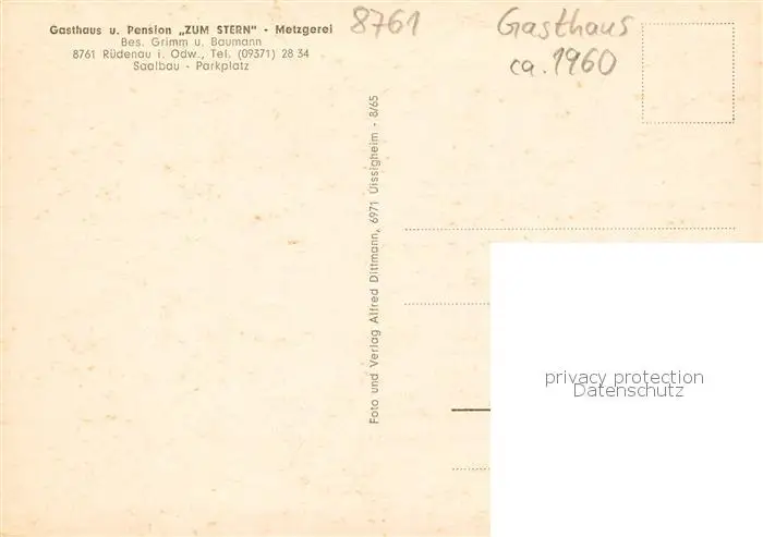 73853001 Ruedenau Gasthaus zum Stern Gastraeume Brunnen Ruedenau postalisch nicht gelaufen 1960 Erhaltung siehe scans [WerneD78] [WernPID7 ]
