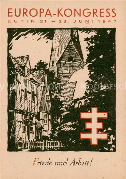 73853408 Eutin Europa-Kongress Friede und Arbeit Kuenstlerkarte Eutin postalisch nicht gelaufen 1947 Erhaltung siehe scans [FriedD77] [Frierer ]