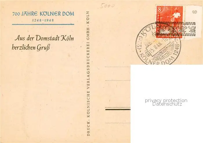 73853432 Koeln__Rhein Brieftaube Werbung Koelnische Rundschau 700 Jahre Koelner Dom postalisch gelaufen 1948 Erhaltung siehe scans [FriedD77] [Frierer ]