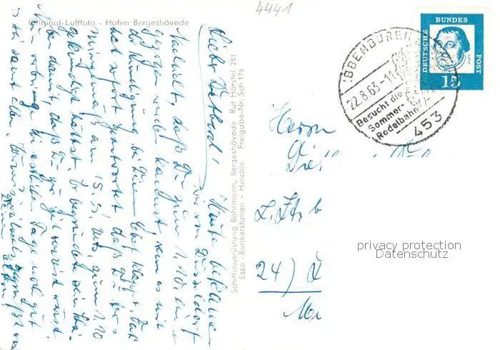 73853466 Bergeshoevede Hafen Original-Luftfoto Bergeshoevede postalisch gelaufen 1963 Fliegeraufnahme Erhaltung siehe scans [FriedD77] Fliegeraufnahme[Frierer ]