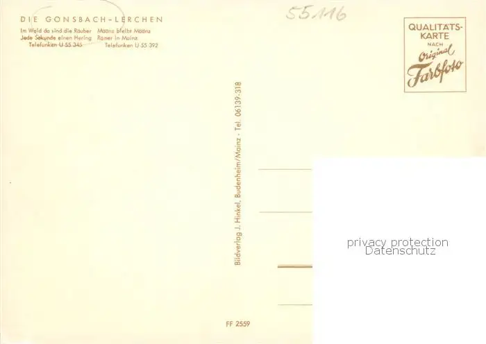 73853558 Gonsbach_Mainz_Rhein Musikkapelle Die Gonsbach Lerchen postalisch nicht gelaufen nach 1965 Erhaltung siehe scans [WerneD78] [WernPID7 ]