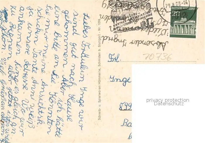 73853574 Schmiden_Fellbach Dreifaltigkeitskirche Kindergarten Friedensschule Zeppelinstrasse Kirche Friedensschule Turn und Lehrschwimmhalle postalisch gelaufen 1968 Erhaltung siehe scans [WerneD78] [WernPID7 ]
