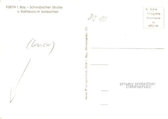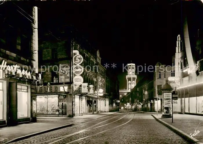 73853607 Fuerth_Bayern Schwabacher Strasse und Rathausturm beleuchtet Fuerth Bayern postalisch nicht gelaufen 1921-1965 Erhaltung siehe scans [WerneD78] [WernPID7 ]