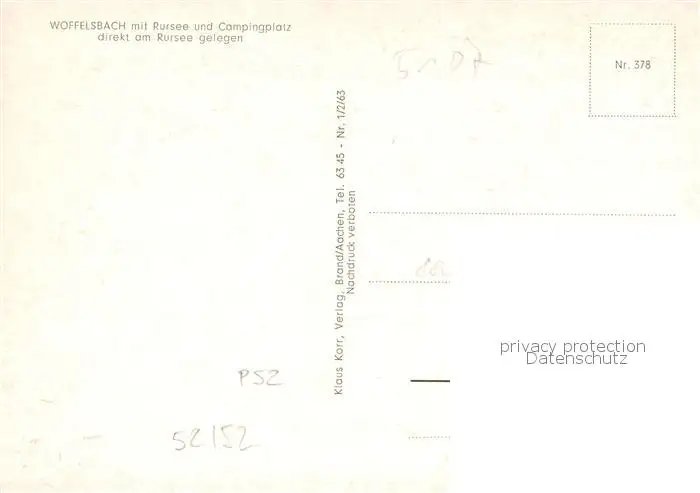 73853612 Woffelsbach_Simmerath Teilansichten mit Rursee und Campingplatz postalisch nicht gelaufen nach 1965 Erhaltung siehe scans [WerneD78] [WernPID7 ]
