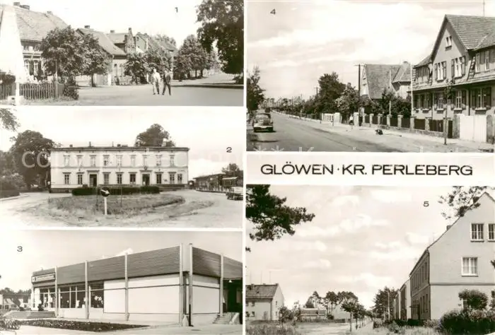 AK / Ansichtskarte 73853629 Gloewen_Plattenburg Heinrich Heine Platz Bahnhof Konsum Einkaufszentrum Rat der Gemeinde Strasse der Thaelmannspioniere