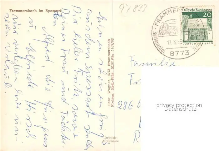 73853689 Frammersbach Fliegeraufnahme Frammersbach postalisch gelaufen 1969 Erhaltung siehe scans [WerneD78] [WernPID7 ]