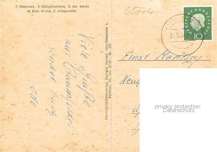 73853779 Baumholder_Nahe Kasernen Edingersmuehle Am Markt Kath Kirche Alleestrasse Baumholder Nahe postalisch gelaufen 1964 Erhaltung siehe scans [WerneD78] [WernPID7 ]