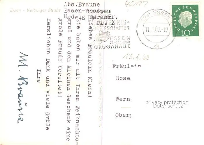 73853786 Essen__Ruhr Kettwiger Strasse Kirche postalisch gelaufen 1960 Erhaltung siehe scans [WerneD78] [WernPID7 ]