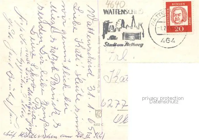 73853821 Wattenscheid Stadthalle Saarlandstrasse Friedenskirche Propsteikirche Stadtgarten Ehrenmal Wattenscheid postalisch gelaufen 1965 Erhaltung siehe scans [WerneD78] [WernPID7 ]
