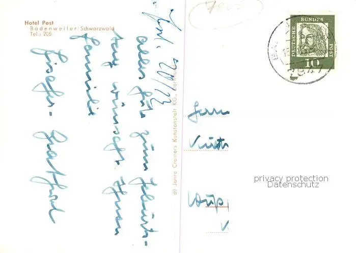 73853827 Badenweiler Hotel Post Badenweiler postalisch gelaufen 1962 Erhaltung siehe scans [WerneD78] [WernPID7 ]