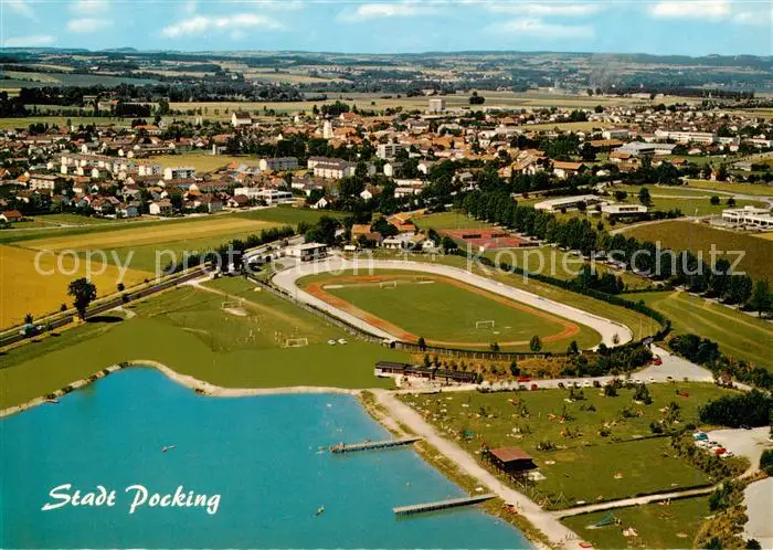 AK / Ansichtskarte 73853837 Pocking Fliegeraufnahme mit Therme und Stadion Pocking