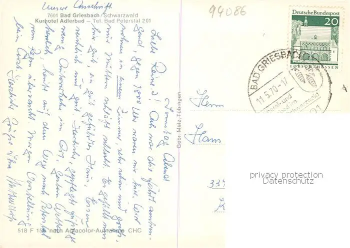 73853838 Bad_Griesbach_Schwarzwald Kurhotel Adlerbad Bad_Griesbach postalisch gelaufen 1970 Erhaltung siehe scans [WerneD78] [WernPID7 ]