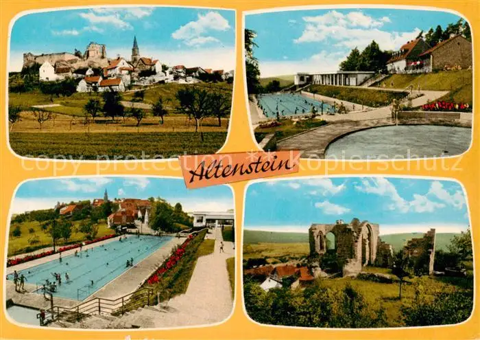 73853915 Altenstein_Hassberge Burgruinen Schwimmbad Altenstein_Hassberge postalisch gelaufen 1974 Erhaltung siehe scans [WerneD78] [WernPID7 ]