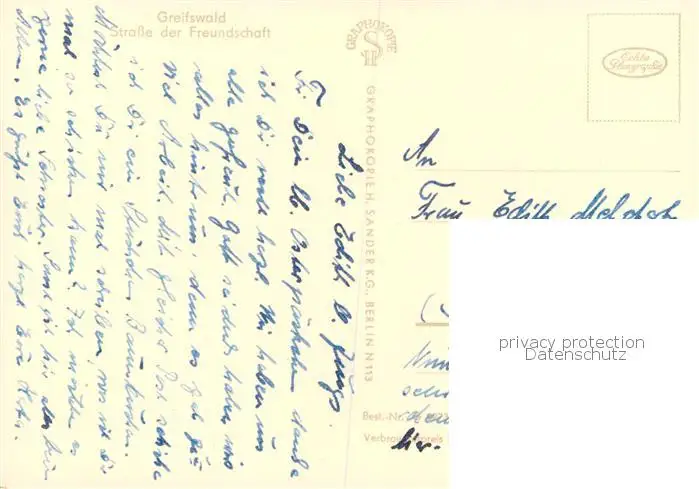 73853937 Greifswald Strasse der Freundschaft Greifswald postalisch nicht gelaufen nach 1965 Erhaltung siehe scans [WerneD78] [WernPID7 ]
