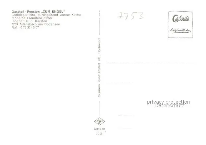 73854157 Allensbach_Bodensee Gasthof Pension Zum Engel Gastraeume Allensbach_Bodensee postalisch nicht gelaufen 1921-1965 Erhaltung siehe scans [WerneD78] [WernPID7 ]