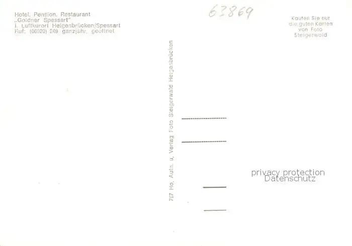 73854179 Heigenbruecken Hotel Goldner Spessart Pension Gastraeume Heigenbruecken postalisch nicht gelaufen nach 1965 Erhaltung siehe scans [WerneD78] [WernPID7 ]