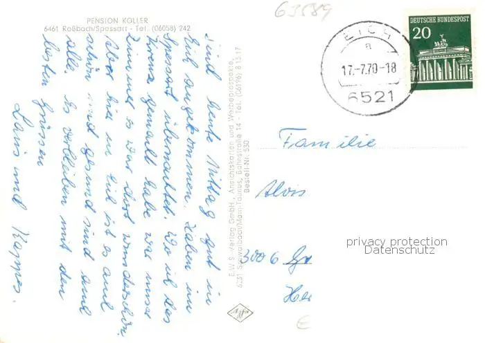 73854185 Rossbach_Spessart Pension Koller Rossbach Spessart postalisch gelaufen 1970 Erhaltung siehe scans [WerneD78] [WernPID7 ]