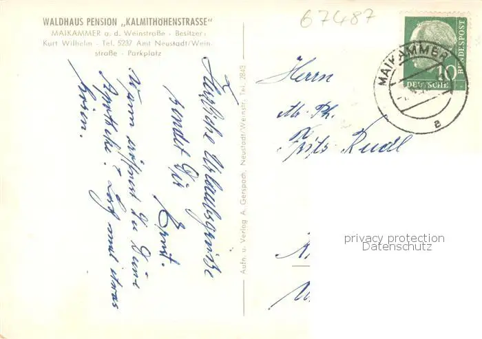 73854371 Maikammer Waldhaus Pension Kalmithoehenstrasse Biergarten Maikammer postalisch gelaufen 1957 Erhaltung siehe scans [FriedD77] [Frierer ]