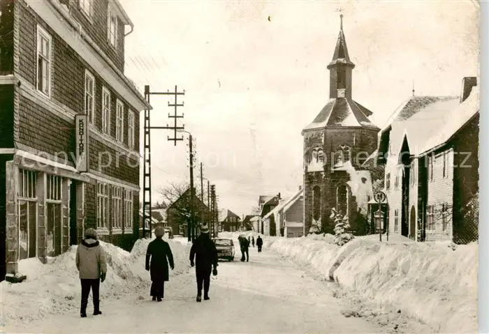 73854412 Neustadt_Rennsteig Ortszentrum mit Kirche Erholungsort im Winter Neustadt_Rennsteig postalisch gelaufen 1981 Erhaltung siehe scans [FriedD77] [Frierer ]