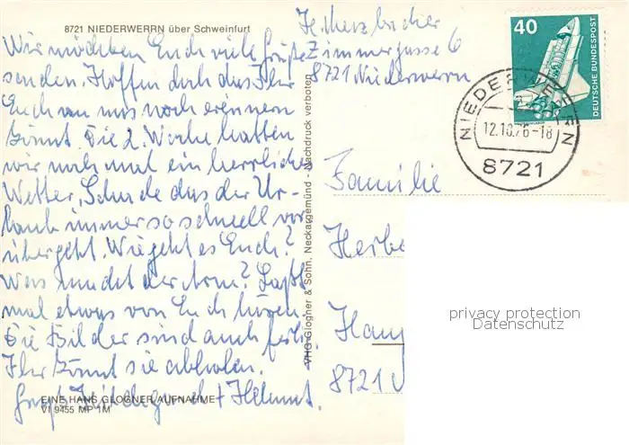 73854437 Niederwerrn Teilansichten Kirche Parkanlagen Niederwerrn postalisch gelaufen 1976 Erhaltung siehe scans [FriedD77] [Frierer ]