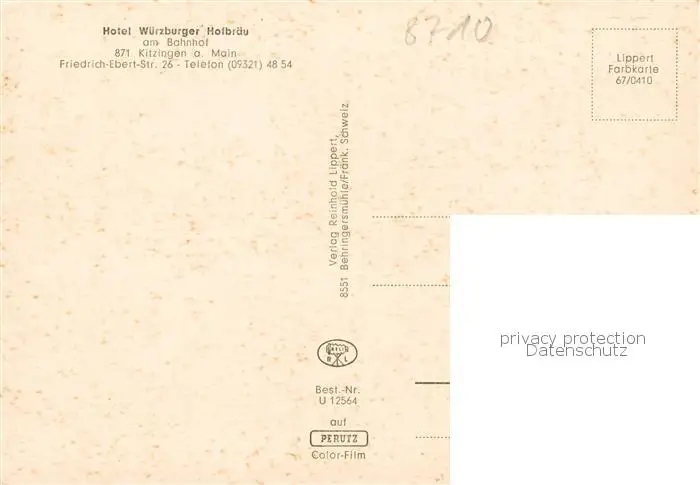 73854484 Kitzingen_Main Hotel Wuerzburger Hofbraeu Kitzingen Main postalisch nicht gelaufen nach 1965 Erhaltung siehe scans [WerneD78] [WernPID7 ]