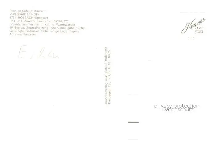 73854501 Hobbach Fliegeraufnahme mit Pension Cafe Restaurant Spessarter Hof Hobbach postalisch nicht gelaufen nach 1965 Erhaltung siehe scans [WerneD78] [WernPID7 ]