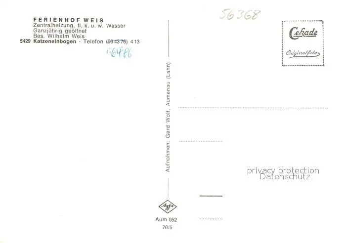73854515 Katzenelnbogen Ferienhof Weis Gaststube Weiderinder Katzenelnbogen postalisch nicht gelaufen 1921-1965 Erhaltung siehe scans [WerneD78] [WernPID7 ]
