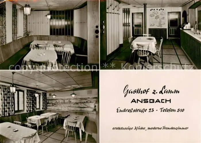 73854585 Ansbach_Mittelfranken Gasthof zum Lamm Gastraeume Ansbach Mittelfranken postalisch gelaufen 1963 Erhaltung siehe scans [WerneD78] [WernPID7 ]