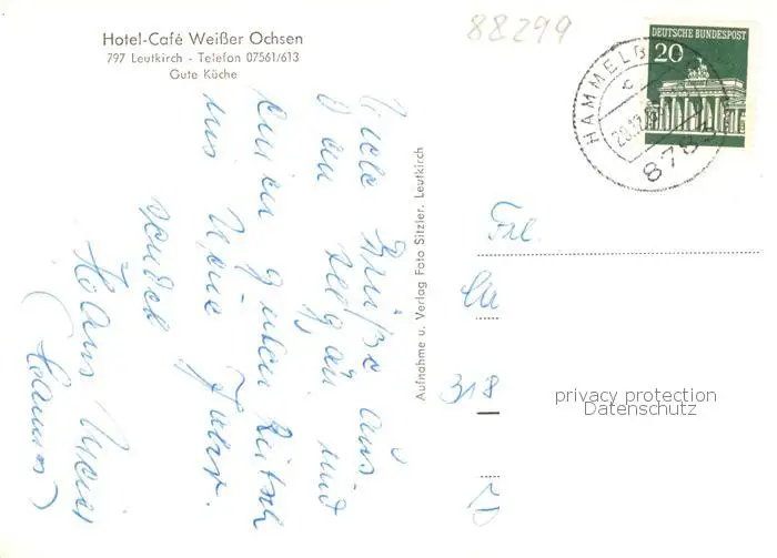 73854593 Leutkirch Hotel Cafe Weisser Ochsen Gaststube Zimmer Leutkirch postalisch gelaufen 1968 Erhaltung siehe scans [WerneD78] [WernPID7 ]