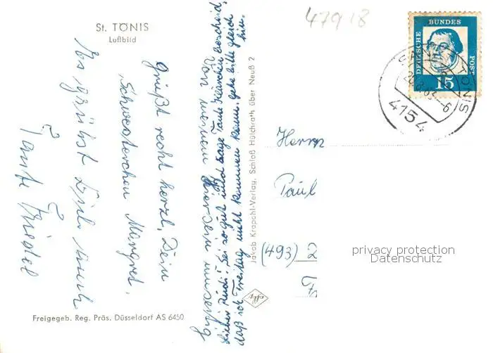 73854606 St_Toenis_Sankt_Toenis_Toenisvorst Fliegeraufnahme mit Kirche postalisch gelaufen 1963 Erhaltung siehe scans [WerneD78] [WernPID7 ]