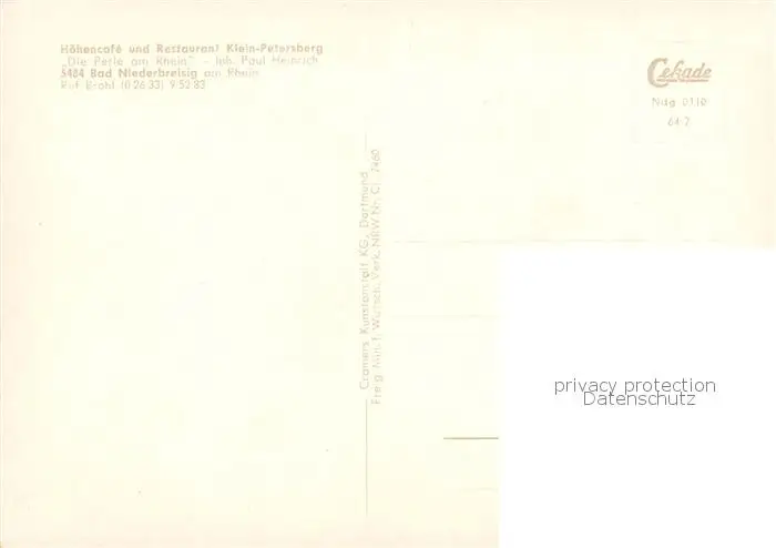 AK / Ansichtskarte 73854736 Bad_Niederbreisig Hoehencafé Restaurant Klein-Petersberg Bad_Niederbreisig