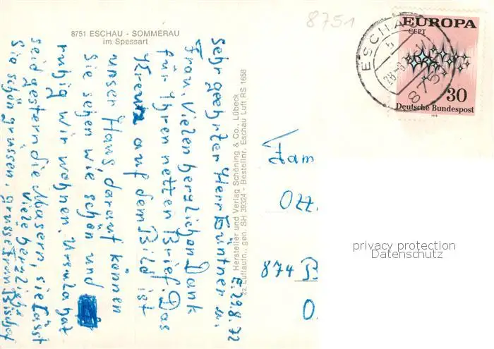 73854744 Eschau_Unterfranken Fliegeraufnahme mit Sommerau Eschau Unterfranken postalisch gelaufen 1972 Erhaltung siehe scans [WerneD78] [WernPID7 ]