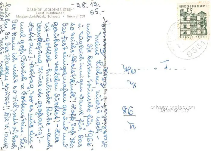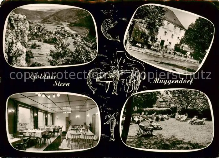 73854750 Muggendorf_Fraenkische_Schweiz Gasthof Goldner Stern Gaststube Liegewiese Panorama Muggendorf_Fraenkische postalisch gelaufen 1965 Erhaltung siehe scans [WerneD78] [WernPID7 ]