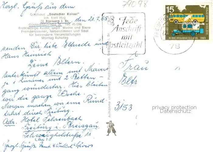 73854803 Freiburg_Breisgau Gasthaus Deutscher Kaiser Bierkutsche Strassenpartie Gaststube Zimmer Freiburg Breisgau postalisch gelaufen 1965 Erhaltung siehe scans [WerneD78] [WernPID7 ]