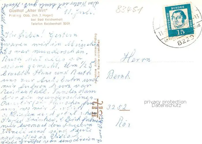73854809 Piding Gasthof Alter Wirt Gastraeume Piding postalisch gelaufen 1965 Erhaltung siehe scans [WerneD78] [WernPID7 ]