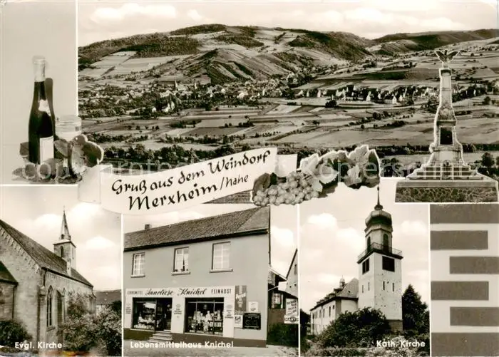 AK / Ansichtskarte 73854851 Merxheim_Nahe Panorama Ev Kirche Lebensmittelhaus Knichel Kath Kirche Merxheim Nahe