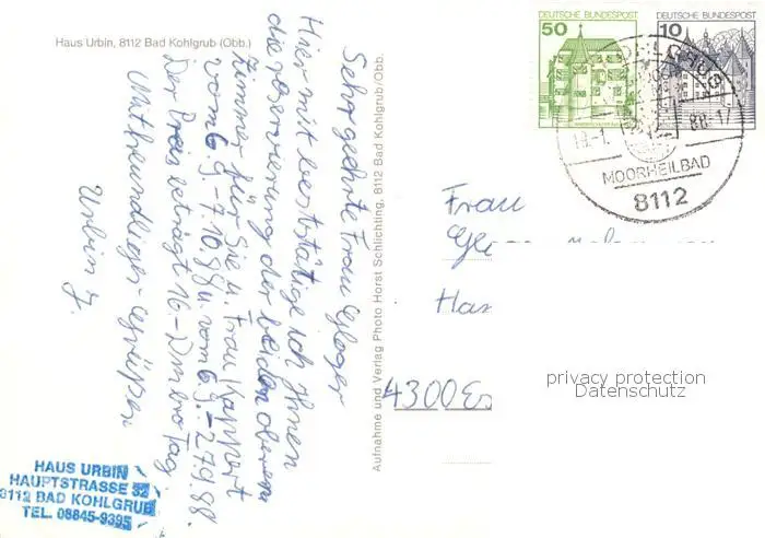 73854905 Bad_Kohlgrub Haus Urbin Bad_Kohlgrub postalisch gelaufen 1988 Erhaltung siehe scans [FriedD77] [Frierer ]