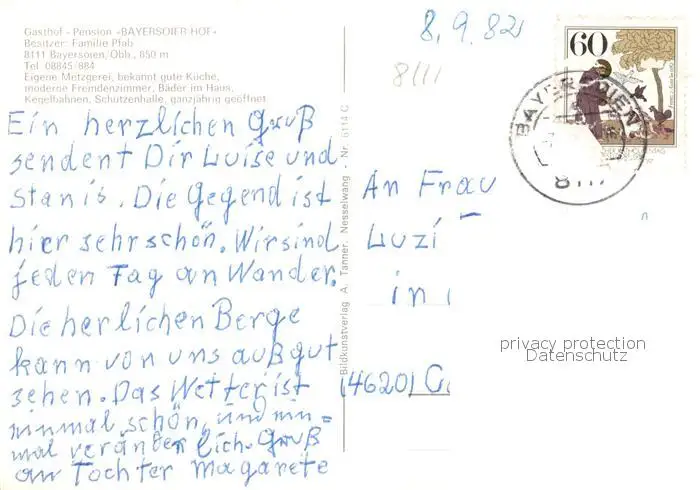 73855026 Bayersoien_Oberammergau Gasthof Pension Bayersoier Hof Restaurant Kapelle Partie am See Bayersoien Oberammergau postalisch gelaufen 1982 Erhaltung siehe scans [FriedD77] [Frierer ]