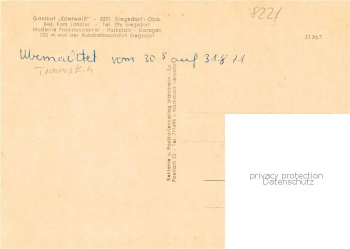 73855072 Siegsdorf__Oberbayern Gasthof Edelweiss Restaurant Alpen postalisch nicht gelaufen 1971 Erhaltung siehe scans [FriedD77] [Frierer ]