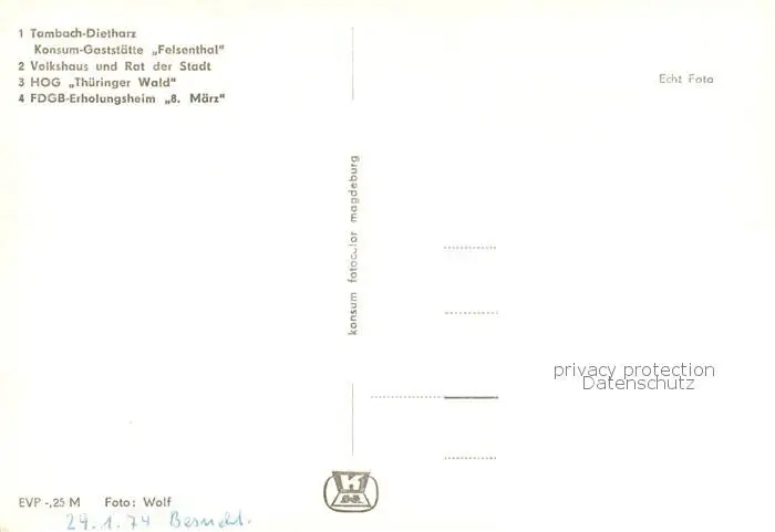 73855103 Tambach-Dietharz Konsum-Gaststaette Felsenthal Volkshaus Rat der Stadt HOG Thueringer Wald FDGB Erholungsheim 8. Maerz Tambach-Dietharz postalisch nicht gelaufen 1972 Erhaltung siehe scans [FriedD77] [Frierer ]