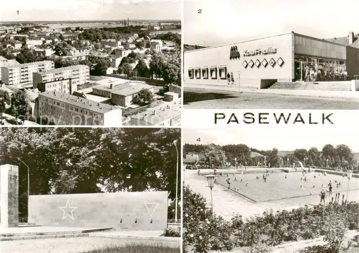 AK / Ansichtskarte 73855106 Pasewalk_Mecklenburg_Vorpommern Teilansicht HO-Kaufhaus Mitte Gedenkstaette im Leninhain Lindenbad Freibad Pasewalk_Mecklenburg