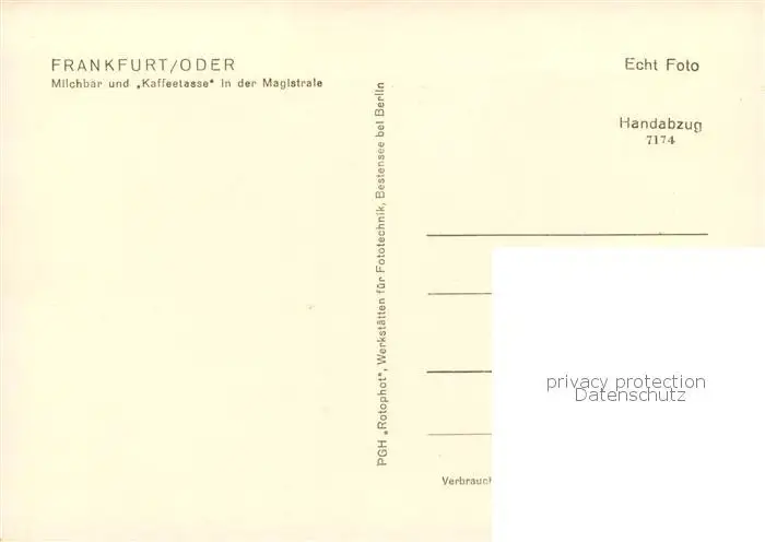 73855114 Frankfurt_Oder Milchbar und Kaffeetasse in der Magistrasse Handabzug Frankfurt Oder postalisch nicht gelaufen 1964 Erhaltung siehe scans [FriedD77] [Frierer ]